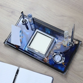 | İçerik: Kalem Seti, Saat, Notluk, Kağıt Tutucu, Kartvizitlik |