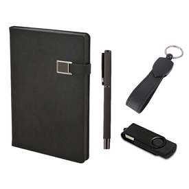 *13 x 21 cm Defter *Roller Kalem *Anahtarlık *32 GB USB *Baskı: Lazer, Serigrafi, Sıcak Baskı