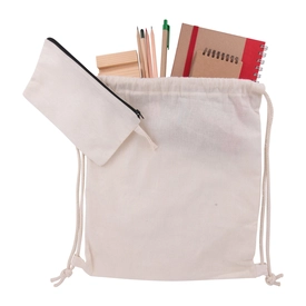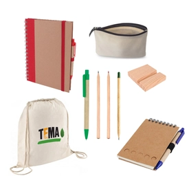 *İp Büzgülü Çanta *15 x 21 cm Defter *Bez Kalemlik *Geri Dönüşümlü Tükenmez Kalem *Siyah Kurşun Kalem *Kırmızı Kurşun Kalem *Tohumlu Kurşun Kalem *Notluk *Ahşap Telefon Standı *Baskı: Serigrafi, Transfer