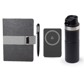 *15 x 21 cm Defter *10.000 mAh Magsafe Powerbank *Işıklı Metal Tükenmez Kalem *500 ml Termos *Baskı: Lazer, Serigrafi, Sıcak, UV